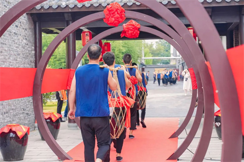 “一聲鼓響,風調雨順!二聲鼓響,美酒天成!三聲鼓響,萬窖齊開!吉時已到,開窖門!”中國釀酒大師、洋河股份總裁鐘雨,著名主持人、朗誦藝術家、中國文聯“終身成就電視藝術家” 陳鐸,中國釀酒大師、洋河股份總工程師周新虎和中央電視臺詩詞大會總顧問,清華大學、南京師范大學教授鐘振振敲響吉祥鼓,2023年洋河·雙溝頭排酒開窖儀式正式開始。